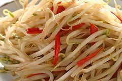 濟(jì)南人喜歡吃豆芽,豆芽炒肉絲、豆芽炒粉皮、綠豆芽炒鮮粉皮、醋溜綠豆芽等,至今仍然經(jīng)常被列入濟(jì)南人一日三餐的菜譜之中;濟(jì)南人在拌涼菜,或做麻汁面時,綠豆芽也都是必不可缺的菜沫。在《中國名菜譜》中,有一道名菜——油潑豆芽,就是由濟(jì)南名廚提供的。